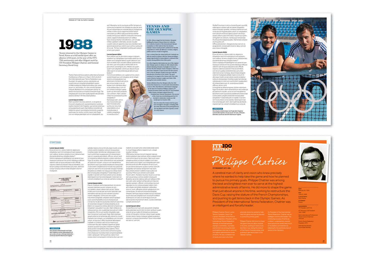 Logo, book design and a variety of communications around the centenary celebrations of the International Tennis Federation.